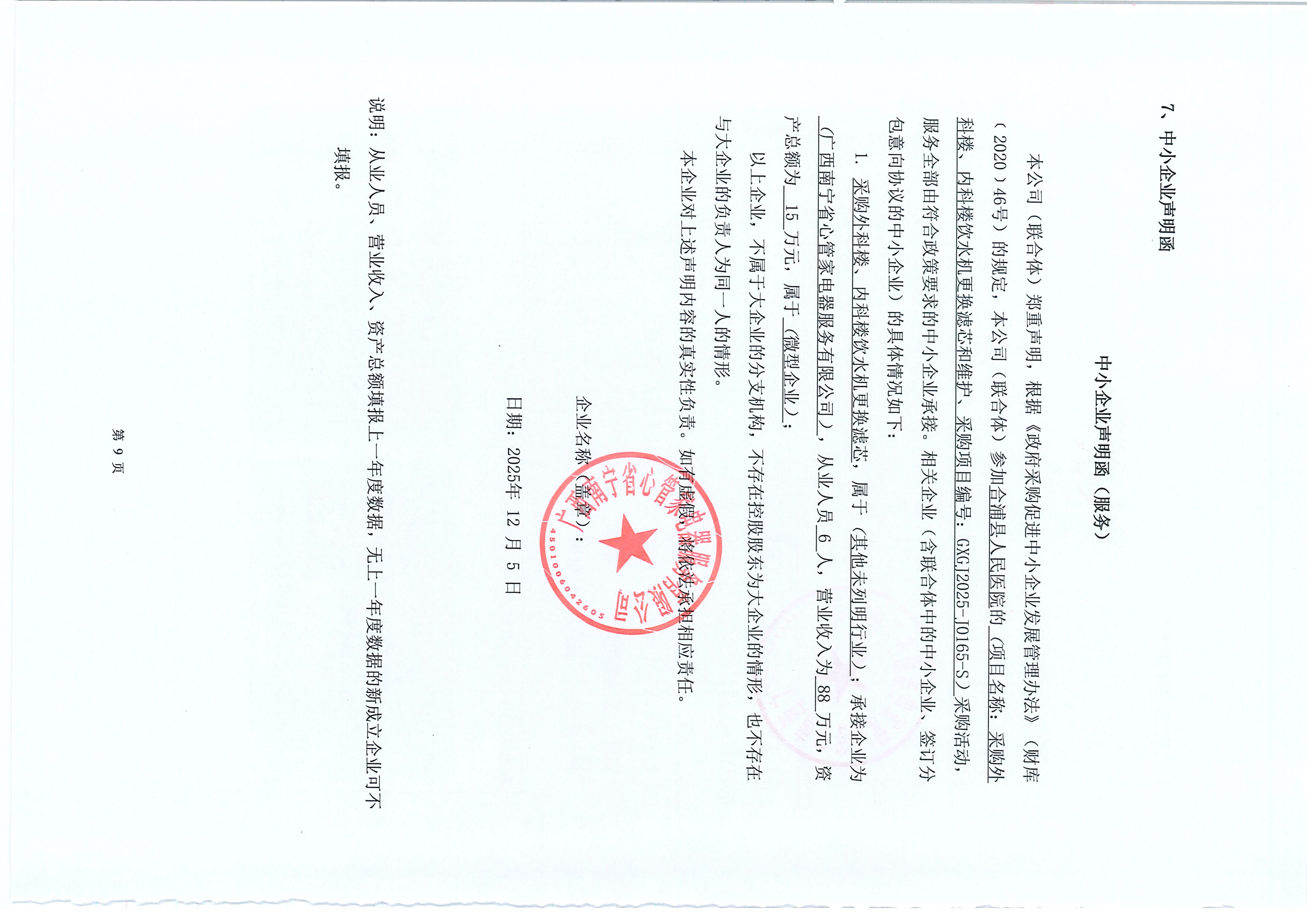 2.《中小企业声明函》